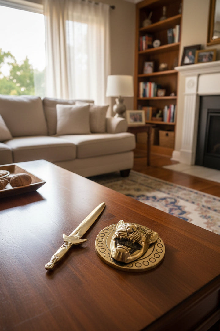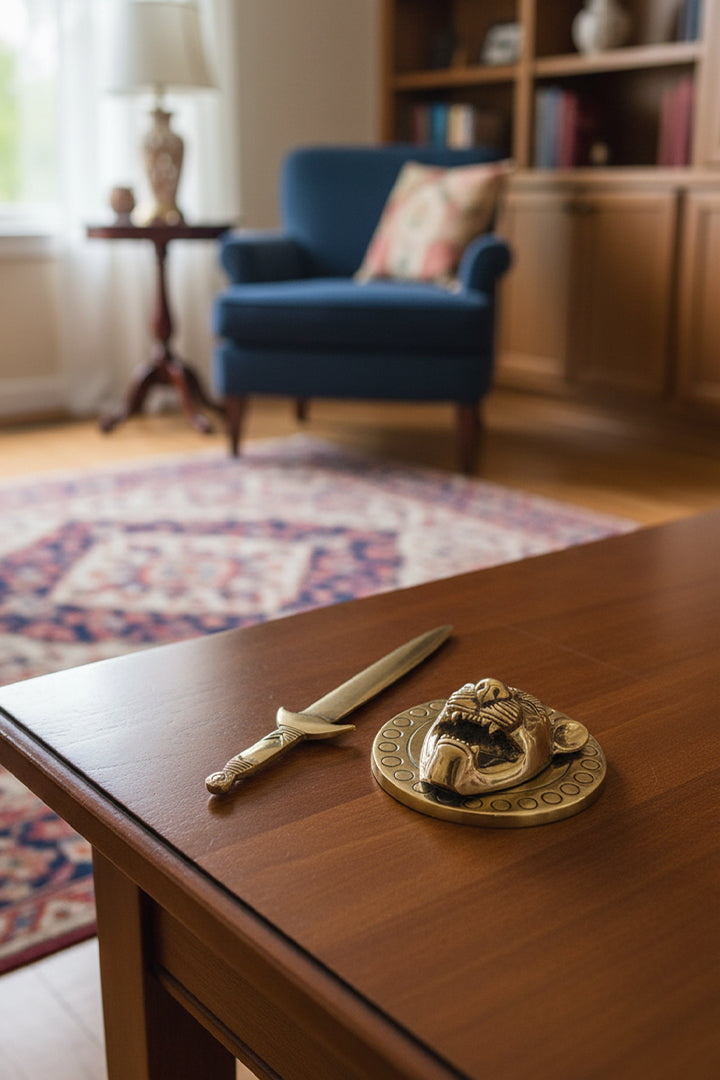 VASTU VARDAN BRASS LION WITH TALWAR STATUE